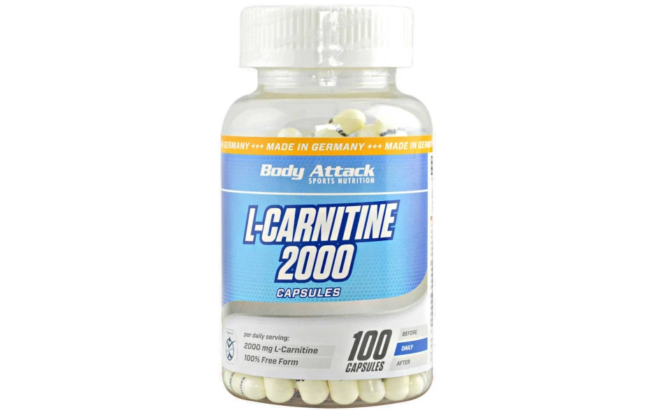 Beliebte L-Carnitin Kapseln von Body Attack mit 2000 mg L-Carnitin pro Portion (4 Kapseln) – Body Attack L-Carnitin – made in Germany!
