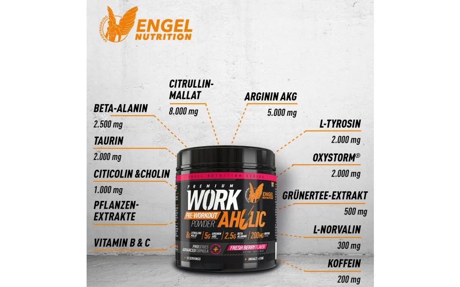 WORKAHOLIC® ist eine leistungsstarke, clever zusammengesetzte Pre-Workout Formula für intensive Trainingseinheiten – hergestellt aus den 20 besten Zutaten mit maximalem Synergie-Effekt.