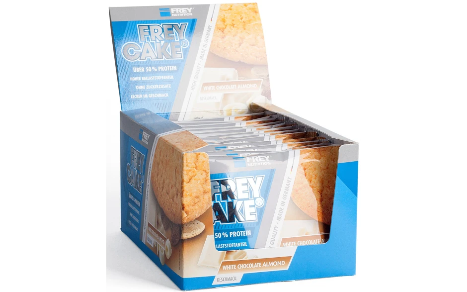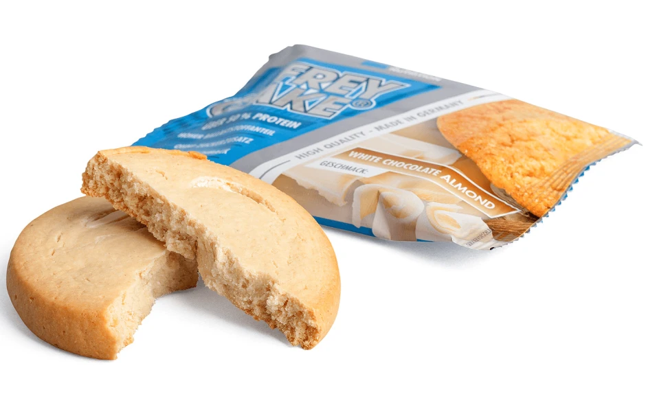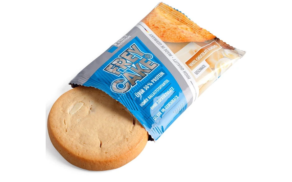 Der brandneuen Protein Cookies von Frey Nutrition verdienen den Namen PROTEIN COOKIE mehr denn je, denn mit einem Proteinanteil von über 50% braucht sich der FREY CAKE vor keinem anderen Protein Cookie zu verstecken. Selbst mit den Top Proteinriegeln aus unserem Online Shop kann der Frey Cake problemlos mithalten – ganz abgesehen vom Geschmack.