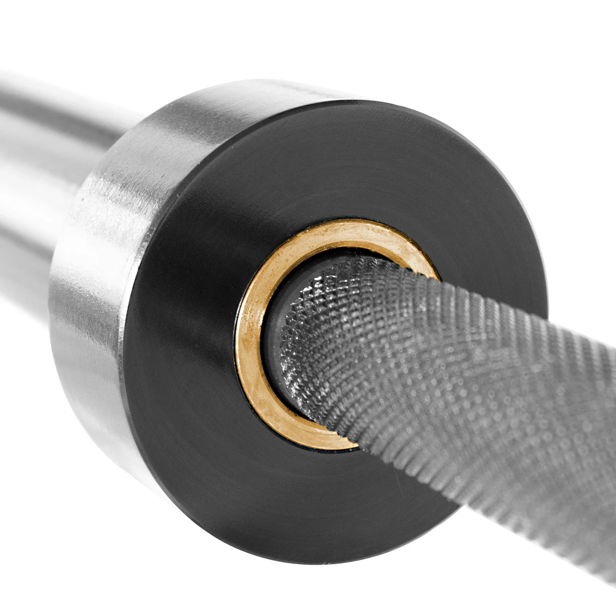 Hantelstange aus gehärtetem Stahl mit Stahlbuchsen, Griffrändelung und guter Drehlagerung für einen sicheren Halt und einen optimierten Bewegungsablauf.